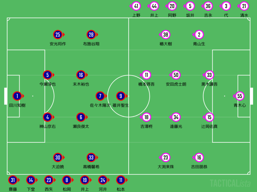 中央は橋本啓吾に当てていって、他の上がりを待って攻撃を展開する感じやちゃ。